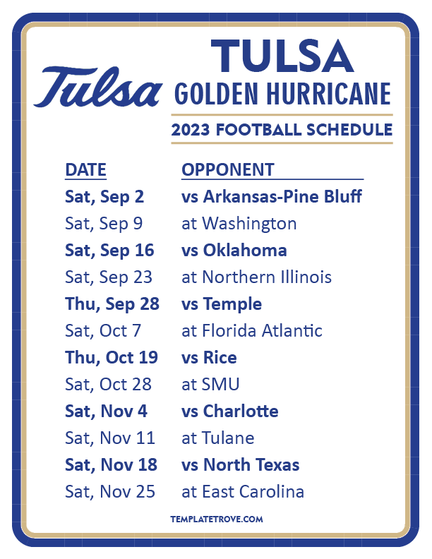 Printable 2023 Tulsa Golden Hurricane Football Schedule