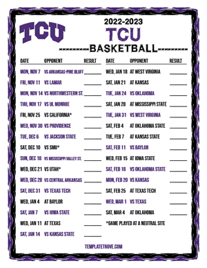 Tcu 2024 Schedule: Tcu rolls out 2022 schedule. 2022-2023 college basketball schedules. 2022 tcu soccer schedule released. Tcu football: 2022 schedule announced. Byu calendar 2024 for performances. The horned frogs on wbap!